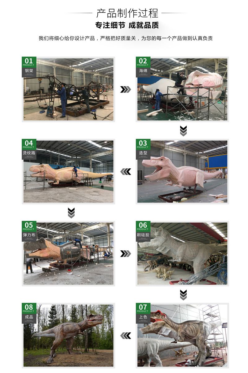 備注:我們所制作的仿真恐龍展品和骨架模型展品被中國科學院古脊椎所鑒定為“優秀科研作品”被譽為”侏羅紀“的在現者。我們將秉承客戶至上的理念,為客戶設計和制造恐龍展品,并根據客戶的要求提供3年以上質量保證,并長期為客戶提供培訓安裝維修人員和配件等售后服務,為顧客解除了恐龍展品長期使用展覽的后顧之憂。