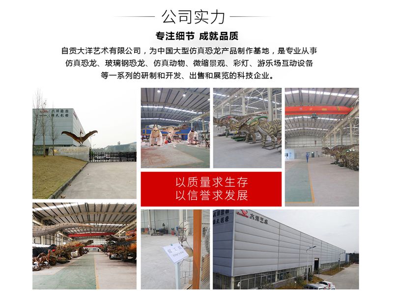 備注:我們所制作的仿真恐龍展品和骨架模型展品被中國科學院古脊椎所鑒定為“優秀科研作品”被譽為”侏羅紀“的在現者。我們將秉承客戶至上的理念,為客戶設計和制造恐龍展品,并根據客戶的要求提供3年以上質量保證,并長期為客戶提供培訓安裝維修人員和配件等售后服務,為顧客解除了恐龍展品長期使用展覽的后顧之憂。