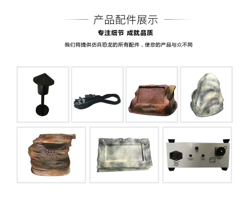 1.每只恐龍展品附件有,控制箱一個,音箱喇叭。