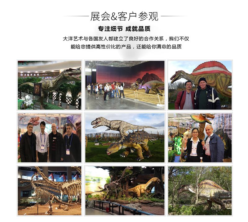 備注:我們所制作的仿真恐龍展品和骨架模型展品被中國科學院古脊椎所鑒定為“優秀科研作品”被譽為”侏羅紀“的在現者。我們將秉承客戶至上的理念,為客戶設計和制造恐龍展品,并根據客戶的要求提供3年以上質量保證,并長期為客戶提供培訓安裝維修人員和配件等售后服務,為顧客解除了恐龍展品長期使用展覽的后顧之憂。