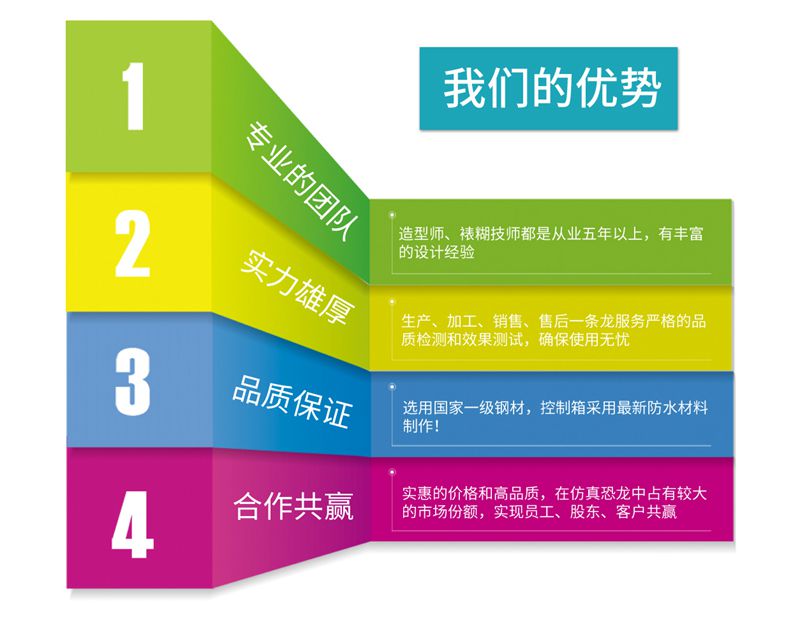備注:我們所制作的仿真恐龍展品和骨架模型展品被中國科學院古脊椎所鑒定為“優秀科研作品”被譽為”侏羅紀“的在現者。我們將秉承客戶至上的理念,為客戶設計和制造恐龍展品,并根據客戶的要求提供3年以上質量保證,并長期為客戶提供培訓安裝維修人員和配件等售后服務,為顧客解除了恐龍展品長期使用展覽的后顧之憂。