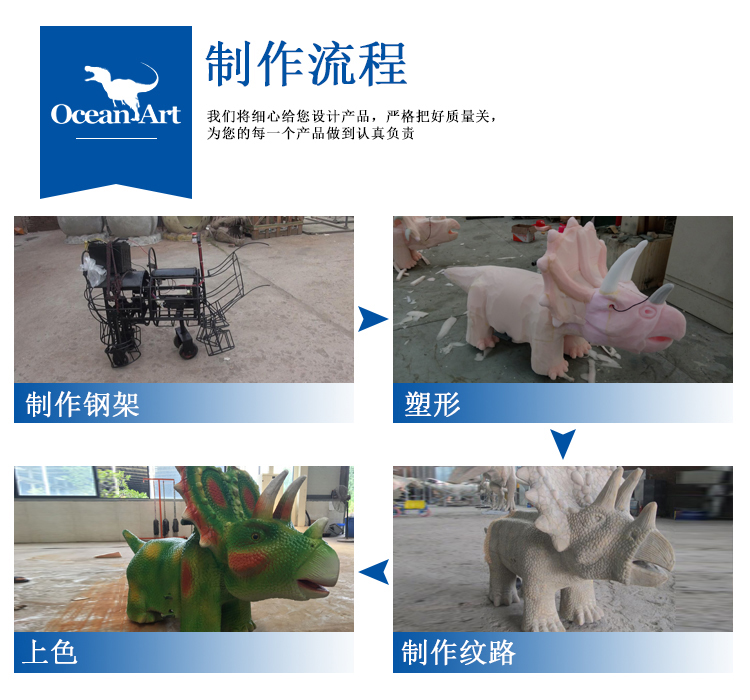 備注:我們注重展覽和產品本身的文化底蘊及科技含量,并且關注產品與觀眾的互動性、娛樂性和參與性,因此,我們先后推出了騎乘恐龍、打斗恐龍組、生蛋龍、蓋章恐龍、恐龍衣服等一系列,科技含量高,故事情節豐富,娛樂參與性極強的產品,深受廣大消費者的青睞。除了產品的研發與制造,公司的營銷核心是一套成熟的、創新性的展覽理念,并在海內外都取得了廣泛的成功!