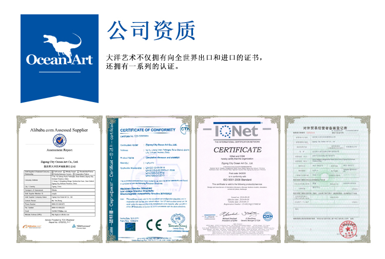 備注:我們注重展覽和產品本身的文化底蘊及科技含量,并且關注產品與觀眾的互動性、娛樂性和參與性,因此,我們先后推出了騎乘恐龍、打斗恐龍組、生蛋龍、蓋章恐龍、恐龍衣服等一系列,科技含量高,故事情節豐富,娛樂參與性極強的產品,深受廣大消費者的青睞。除了產品的研發與制造,公司的營銷核心是一套成熟的、創新性的展覽理念,并在海內外都取得了廣泛的成功!