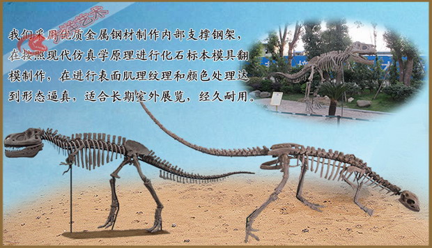 2. 仿真恐龍骨架標本模型展品我們采用優質金屬鋼材制作內部支撐鋼架,在按照現代仿真學原理進行化石標本模具翻模制作,在進行表面肌理紋理和顏色處理。