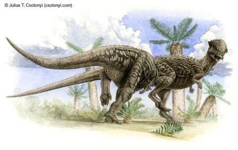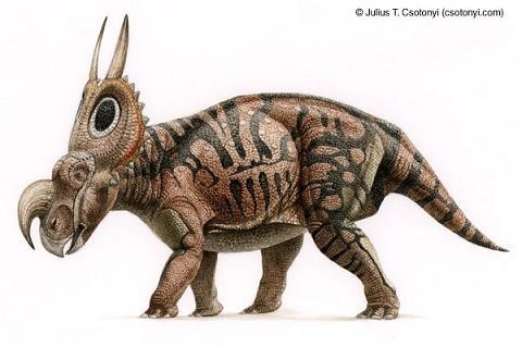 野牛龍生活在白堊紀晚期,大約6 米長、1米高,頭部有三只大角,脖子上有一個大頸盾,邊緣有齒狀骨質突起。它是由山普森(Sampson)在1994年發現的三個頭骨化石命名的。像其它角龍一樣,它在獸群中穿行,有牙齒,能咀嚼最硬的植物。
