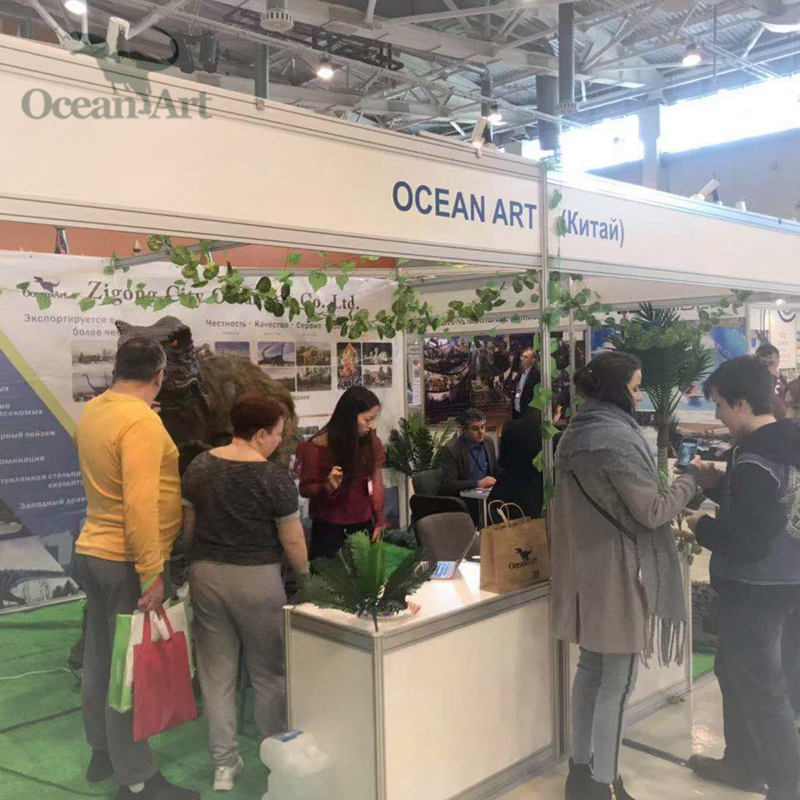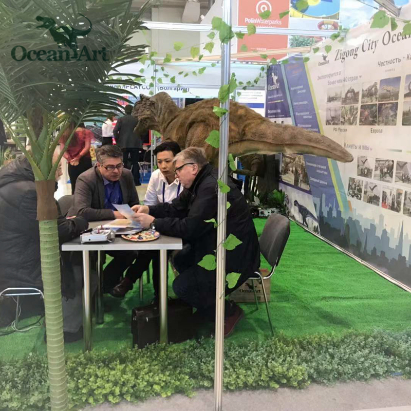2019年3月13日~15日,我司亮相俄羅斯展會。在為期3天的展會中,公司各工作人員付出了辛勤的勞動,收獲頗豐?,F場參觀人員絡繹不絕,看到栩栩如生的恐龍展品,他們紛紛驚嘆我司精湛的手藝,這引得不少外賓新老客戶駐足合影留念。通過與外賓客戶的交流與互動,我司產品質量取得了外賓朋友的一致認可。在這場展會中,我司不僅向世界推廣了公司產品,更弘揚了中國博大精深的恐龍文化!